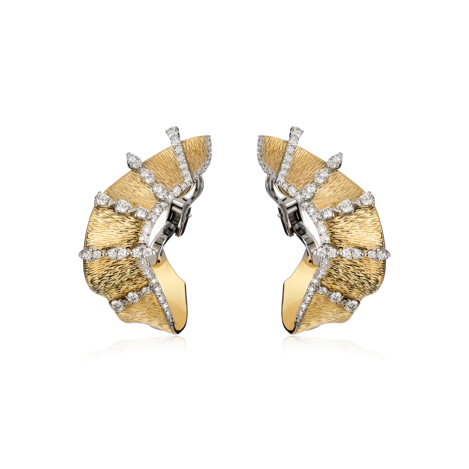 Contemporary 18K yellow gold single Wave earring featuring 0.82 carats of VS-G diamonds.