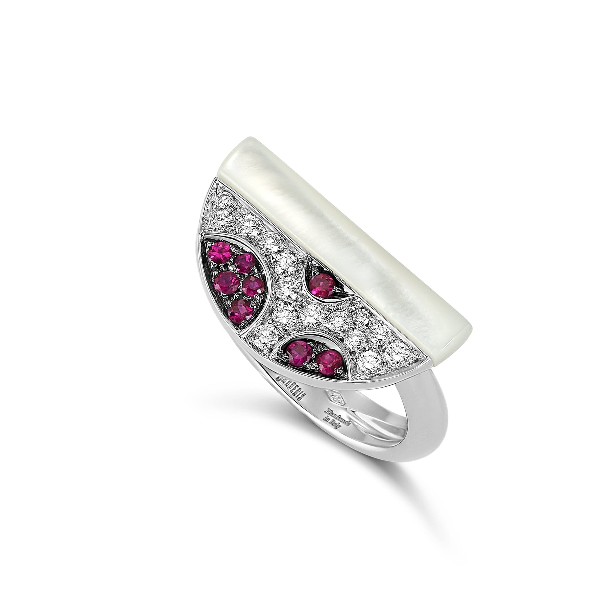 Captivating curves meet refined gems in a timeless silhouette. Accented with radiant Mother of Pearl.