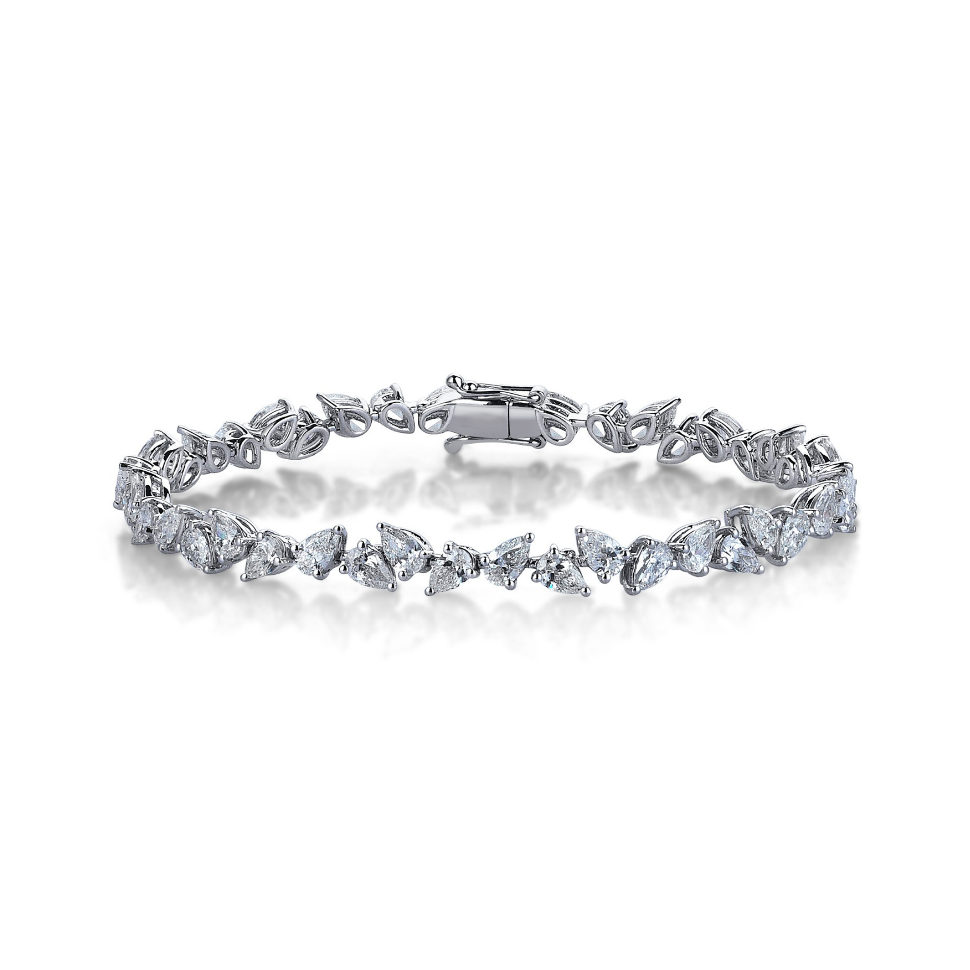 Exquisite 18K white gold bracelet featuring 8.94ct pear-cut VS-G diamonds for bold sophistication.